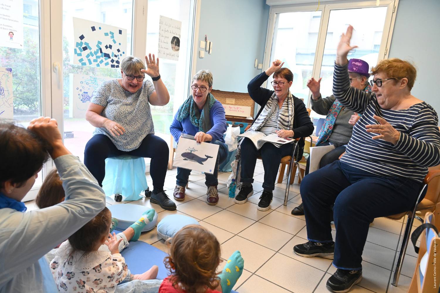 Atelier « Je parle et je chante avec mes mains » animé par Patricia Gomez, du Pôle Santé de la Ville, en langue des signes. Tout au long de la semaine, il se déroulera chaque jour dans une structure « Petite enfance » différente avec des seniors.