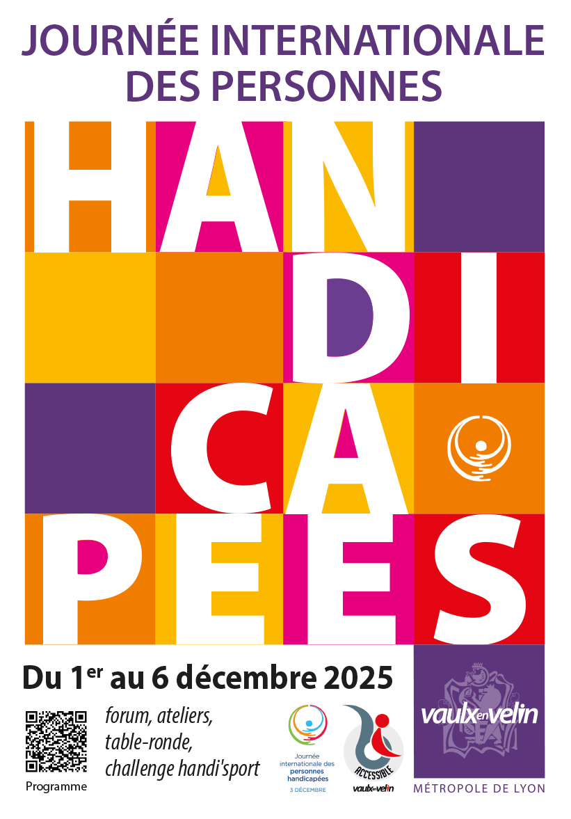 Du 1er au 6 décembre, la Ville de Vaulx-en-Velin et ses partenaires organisent la 10e édition de la Journée Internationale des Personnes Handicapées. Les actions proposées s’adressent à tous les publics, elles ont pour objectifs de contribuer à faire tomber les préjugés, à s’informer et à s’exprimer, ainsi qu’à se détendre. Un programme riche en rendez-vous pour continuer à Faire ensemble une ville inclusive.
