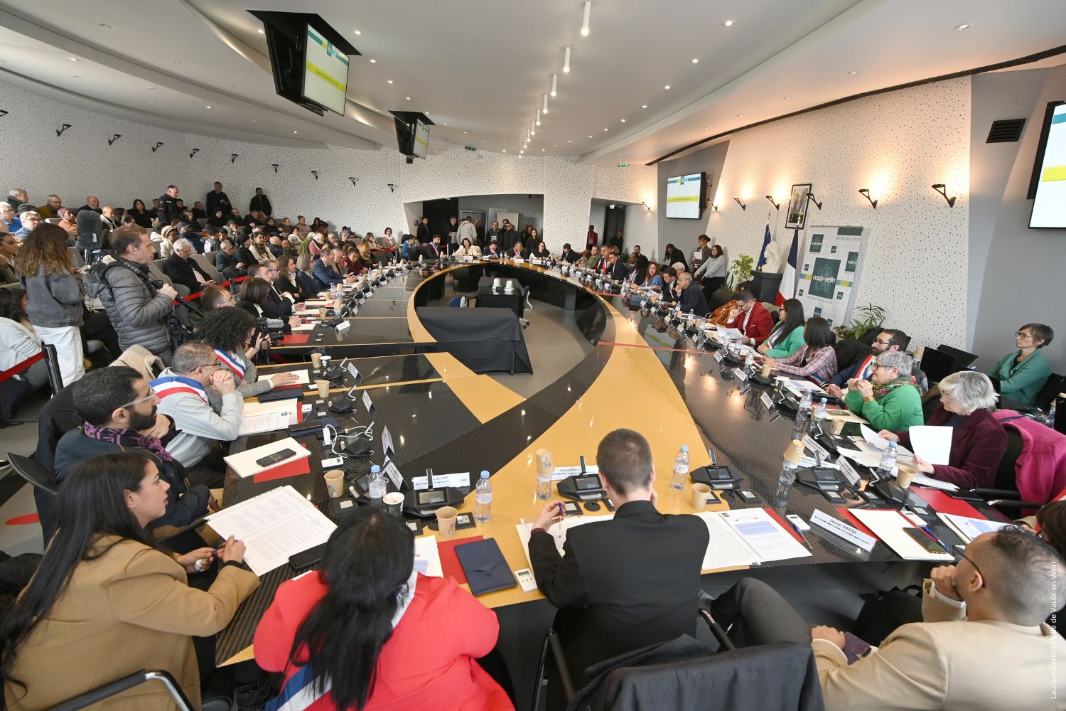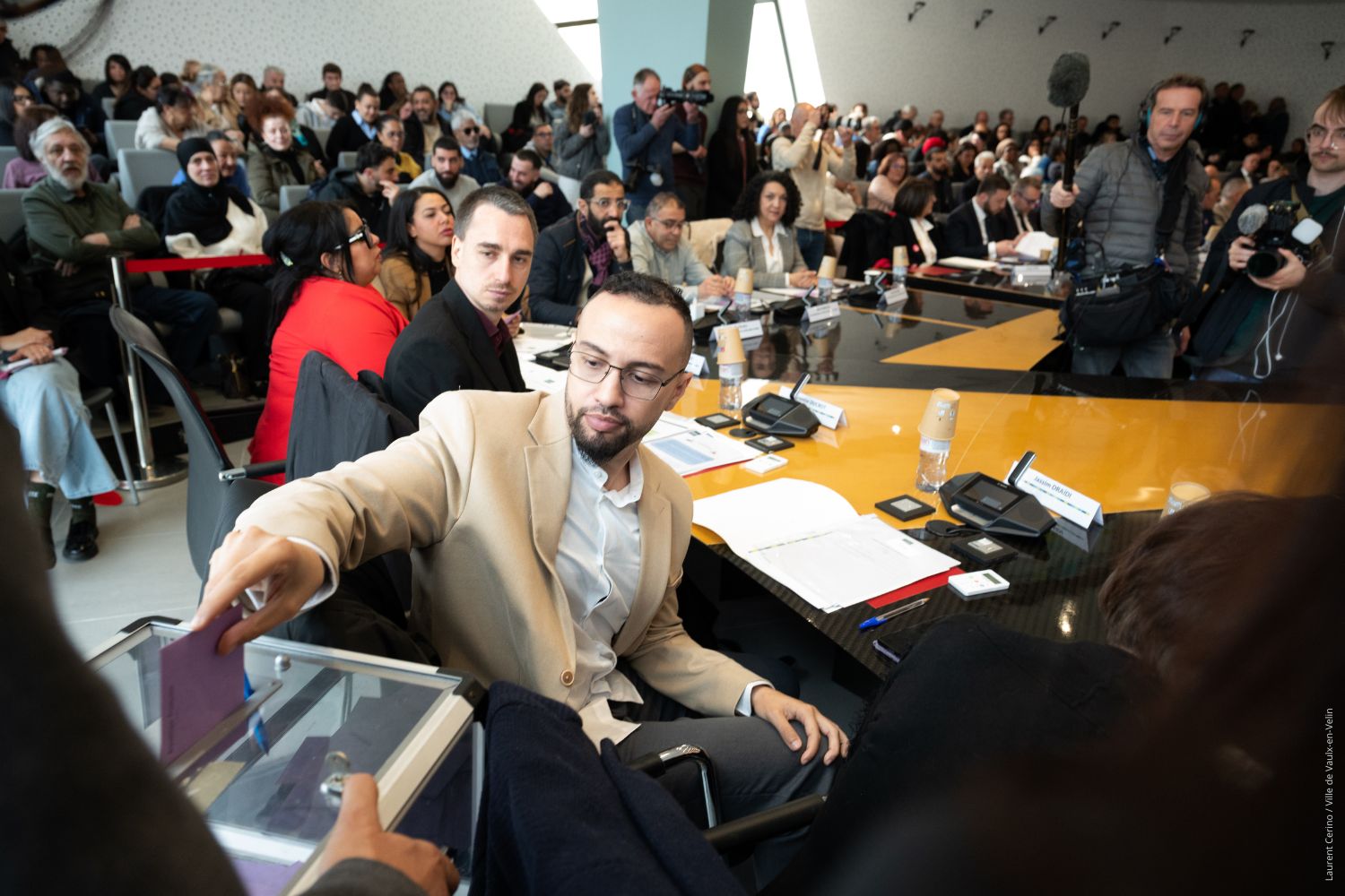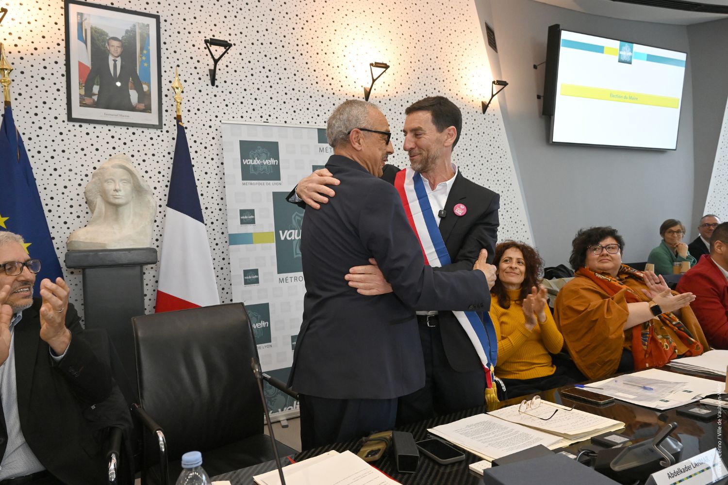 À la suite des élections municipales des 15 et 22 mars, qui ont vu la liste « Vaulx en commun » menée par Abdelkader Lahmar remporter la majorité des votes, la séance d’installation du nouveau Conseil municipal a eu lieu samedi 28 mars 2026. Elle s’est tenue en présence des 34 conseillers et conseillères de la majorité (liste “Vaulx en commun”), de 10 conseillers et conseillères (sur 11 élus) de l’opposition (liste “Vaulx-en-Velin unie”) et d’un public venu très nombreux.