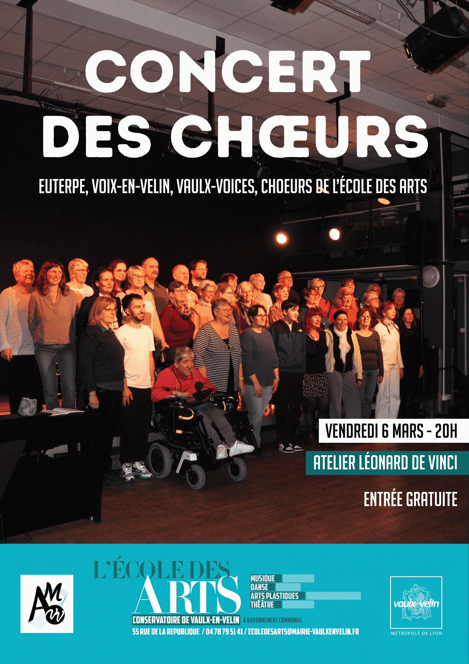 L’École des Arts et l’Association Musicale de Vaulx-en-Velin vous proposent un concert des chœurs à l’Atelier Léonard de Vinci à 20h.