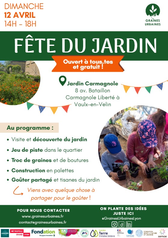 Venez visiter le Jardin Carmagnole, réaliser des constructions en palettes, participer à un jeu de piste dans le quartier, découvrir des jeux sur le thème du jardinage, tester du maquillage végétal et rencontrer d’autres jardinières et jardiniers curieux ! L’après-midi se terminera par un goûter partagé, venez avec quelque chose à partager (des fruits, votre gâteau préféré, …) !