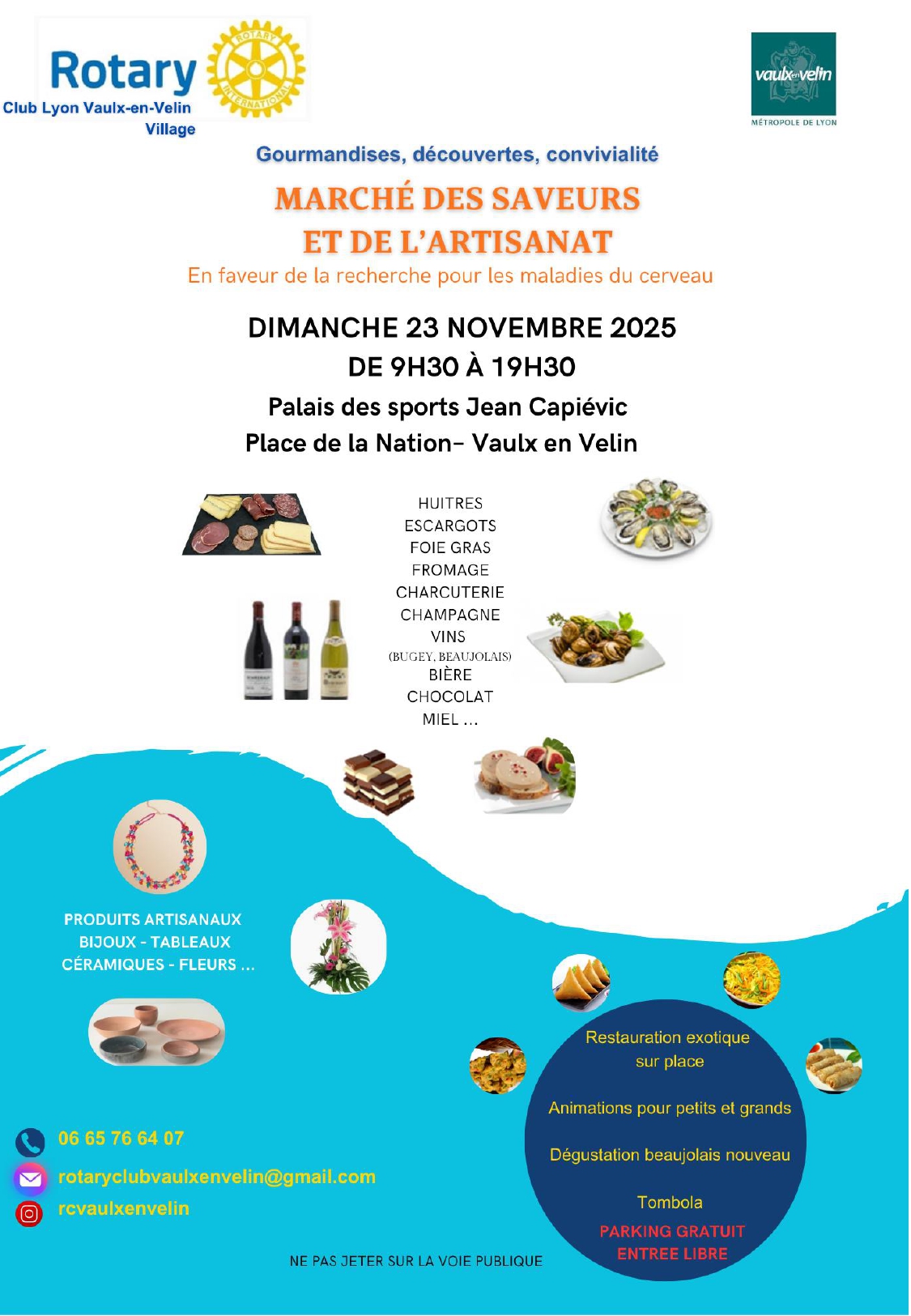 Gourmandises, découvertes, convivialité… Le Rotary Club de Lyon Vaulx en Velin Village organise son « Marché des Saveurs et de l’Artisanat », en faveur de la recherche pour les maladies du cerveau.