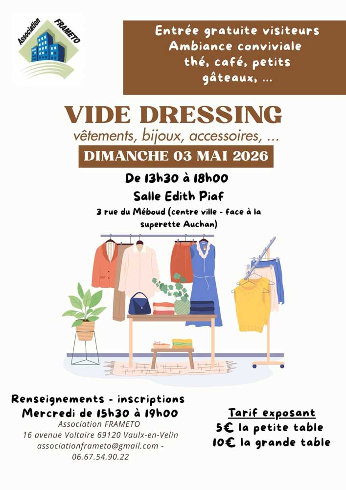 Vide Dressing (vêtements, bijoux, accessoires, …)