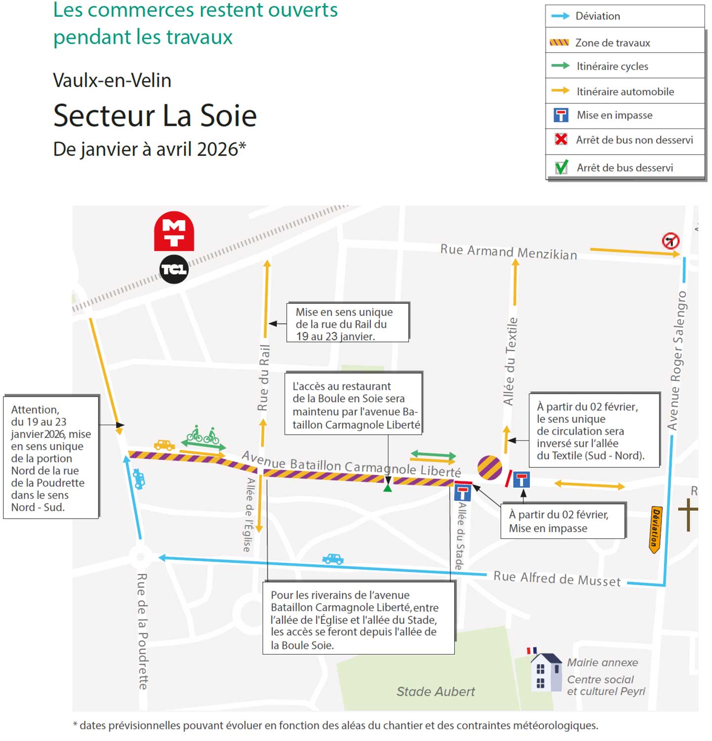 Pour plus de détails sur les travaux en cours sur la commune, vous pouvez également consulter le site internet « agence des mobilités » édité par la Métropole de Lyon : https://mobilites.grandlyon.com/travaux/carte-des-travaux