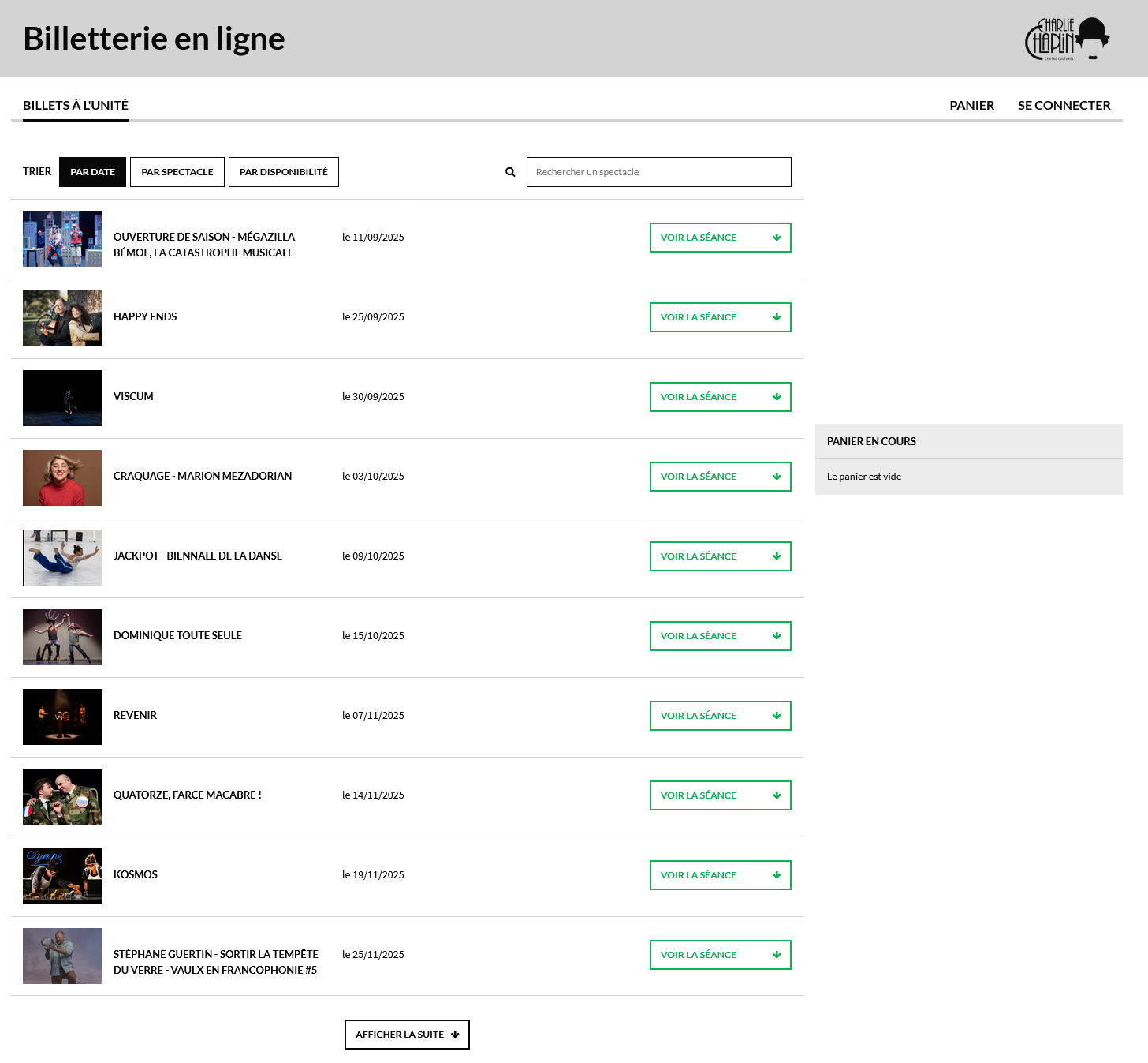 Attention : les billets ne sont désormais plus envoyés par voie postale. Vous pourrez les retirer à la billetterie aux horaires d’ouverture du centre, du lundi au vendredi de 13h30 à 17 h, ou directement avant la représentation à laquelle vous allez assister. Merci pour votre compréhension.